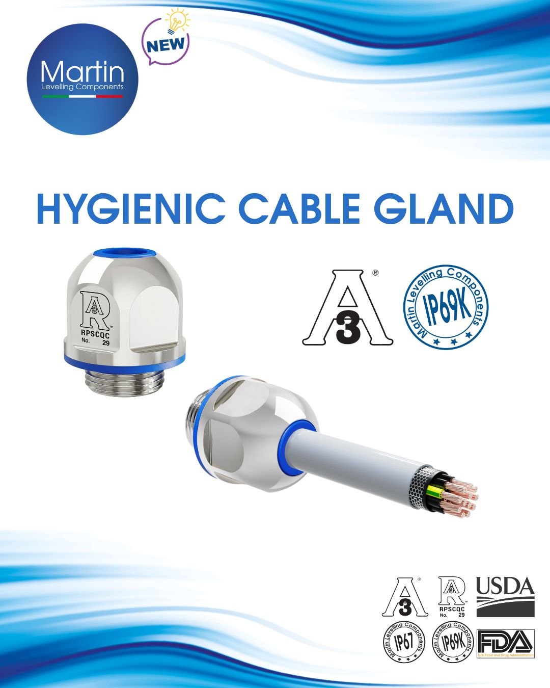 Martin Levelling Components is proud to announce that our completely redesigned Hygienic Cable Gland is officially available to order now, featuring a wide range of general thread sizes to suit your specific machinery needs.