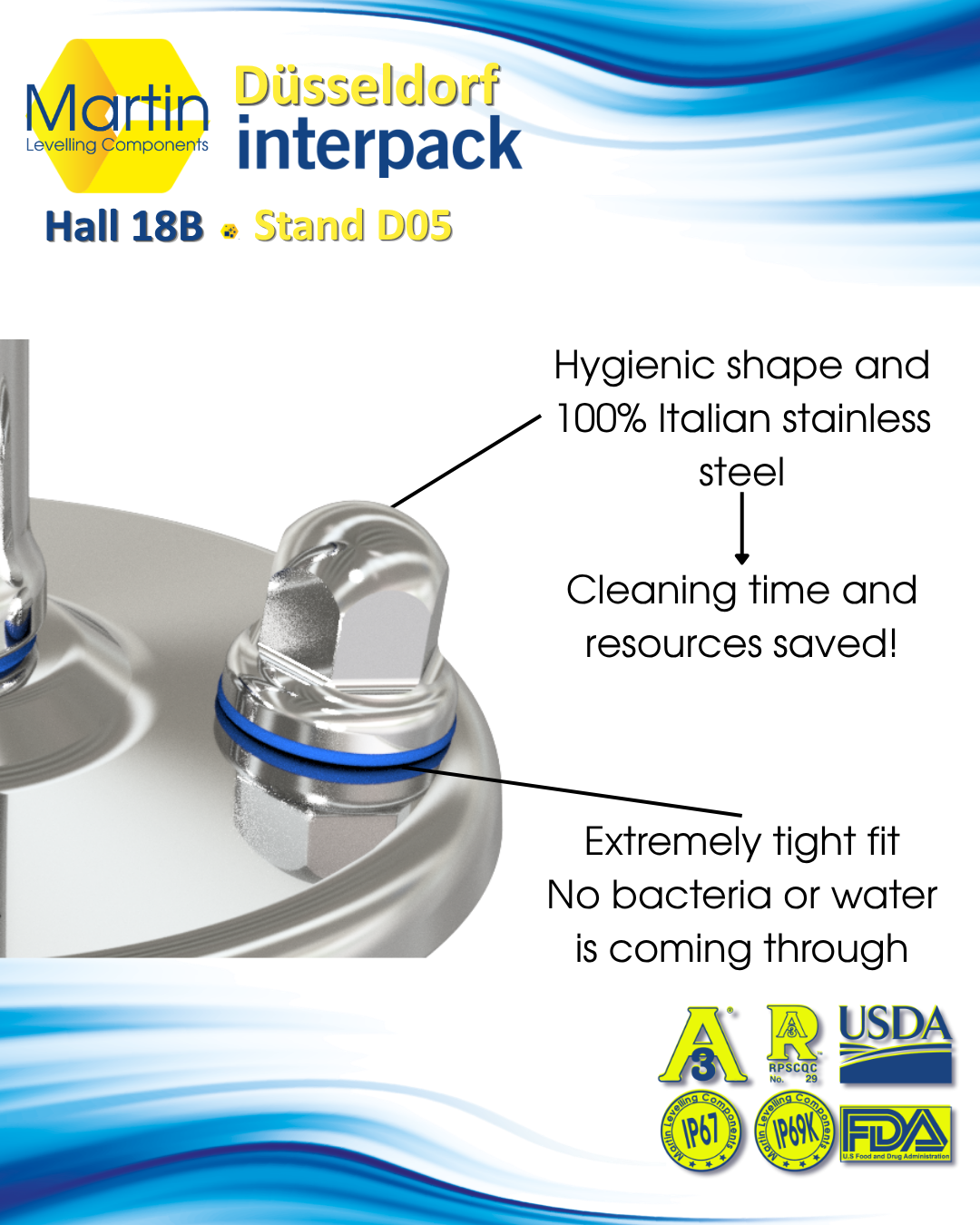 To solve this critical vulnerability, Martin Levelling Components introduces the Hygienic Dome Nut, engineered specifically to meet the highest sanitary standards.